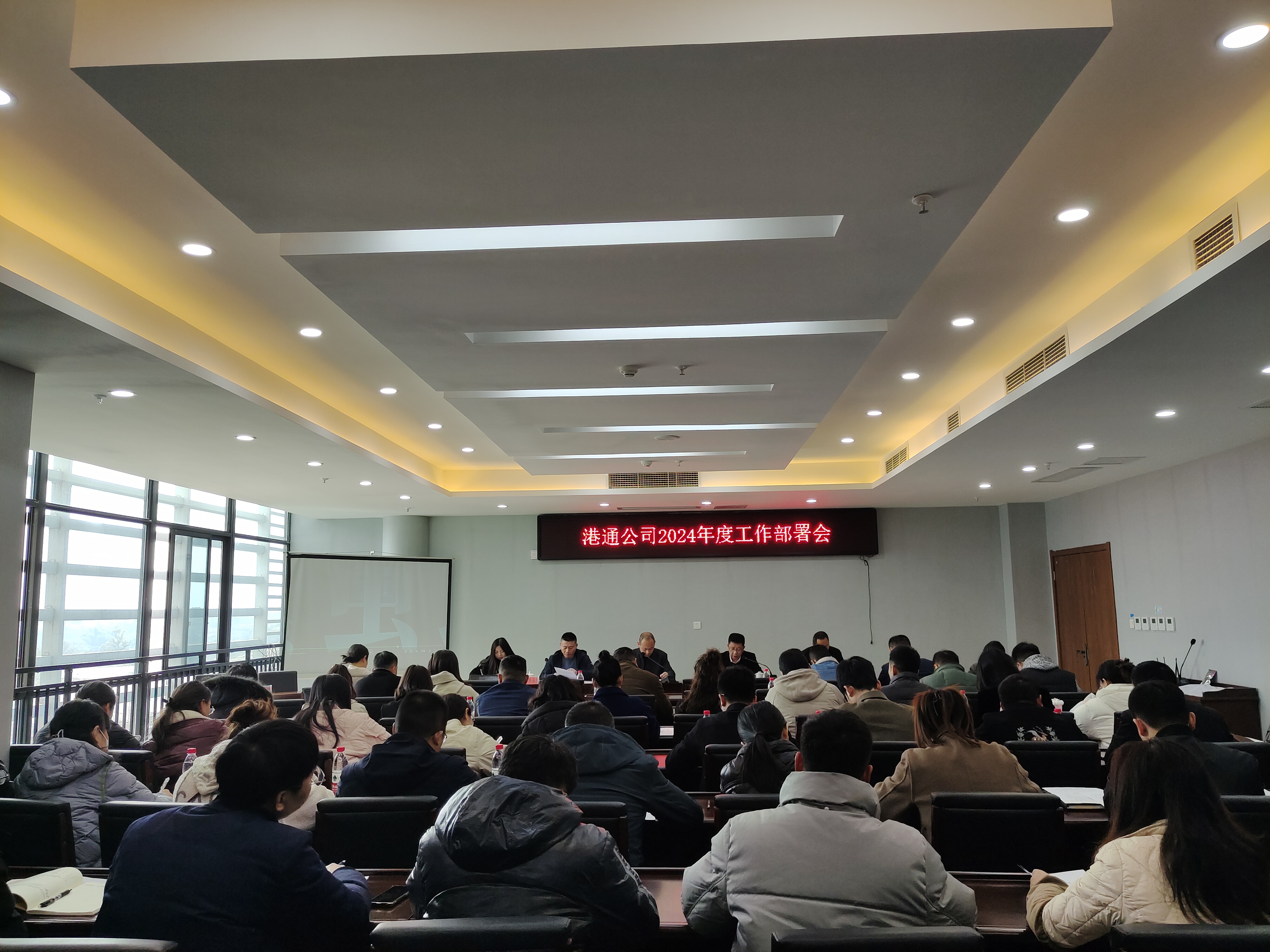 2024.03.12 奋勇拼搏 跳起摸高 港通公司召开2024年度工作部署会 百舸争流千帆竞,策马扬鞭正当时。为进一步强化目标考核激励机制,激发全体员工奋勇拼搏、挑起莫高能力,推动2024年各项工作再上台阶,3月7日,港通公司召开2024年工作部署会,安排部署2024年各项工作。